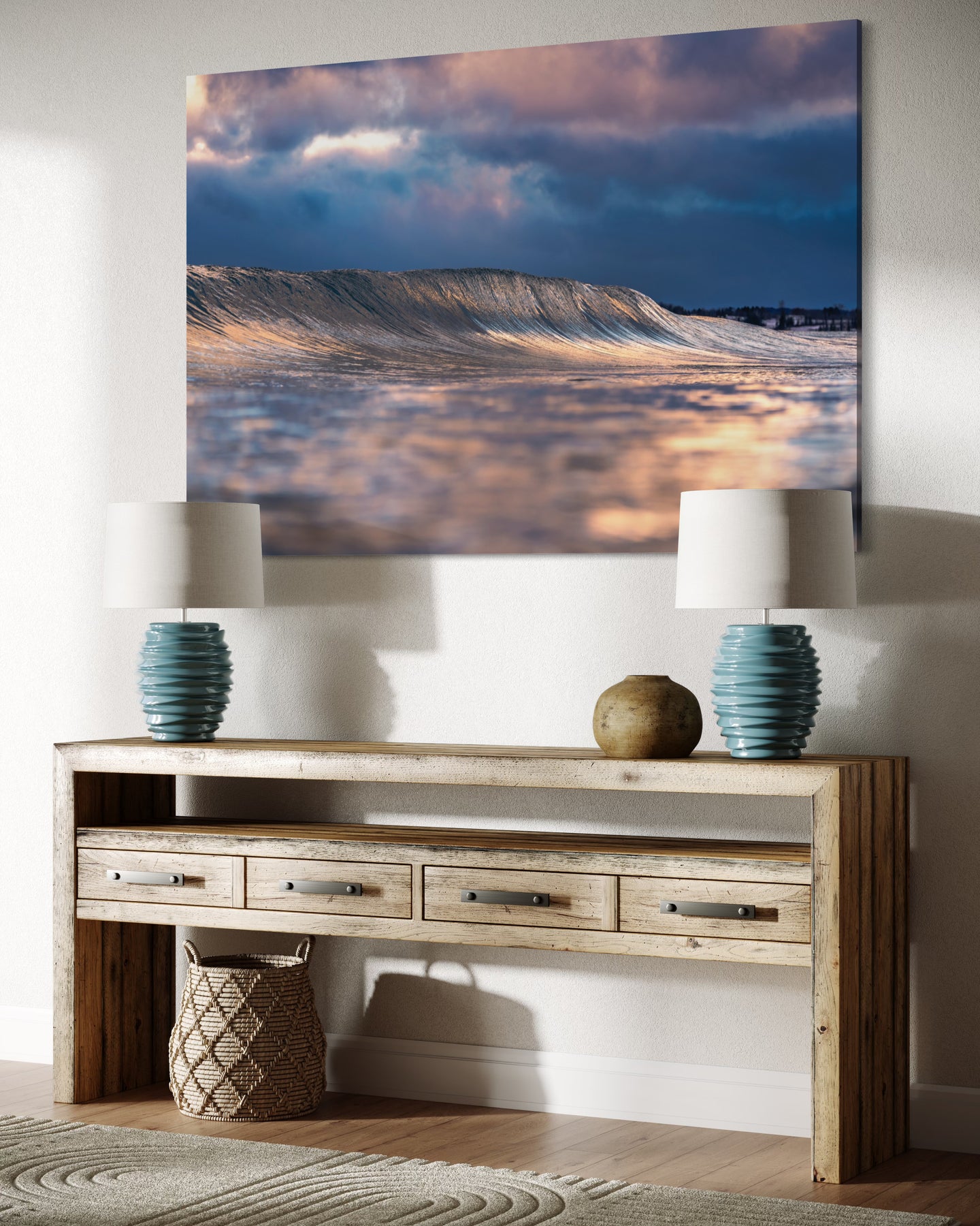 To aid in the process, we utilize digital mockups of YOUR space to help visualize variations under consideration. Email contact@offshoreorigins.com to start a conversation about your custom print!
