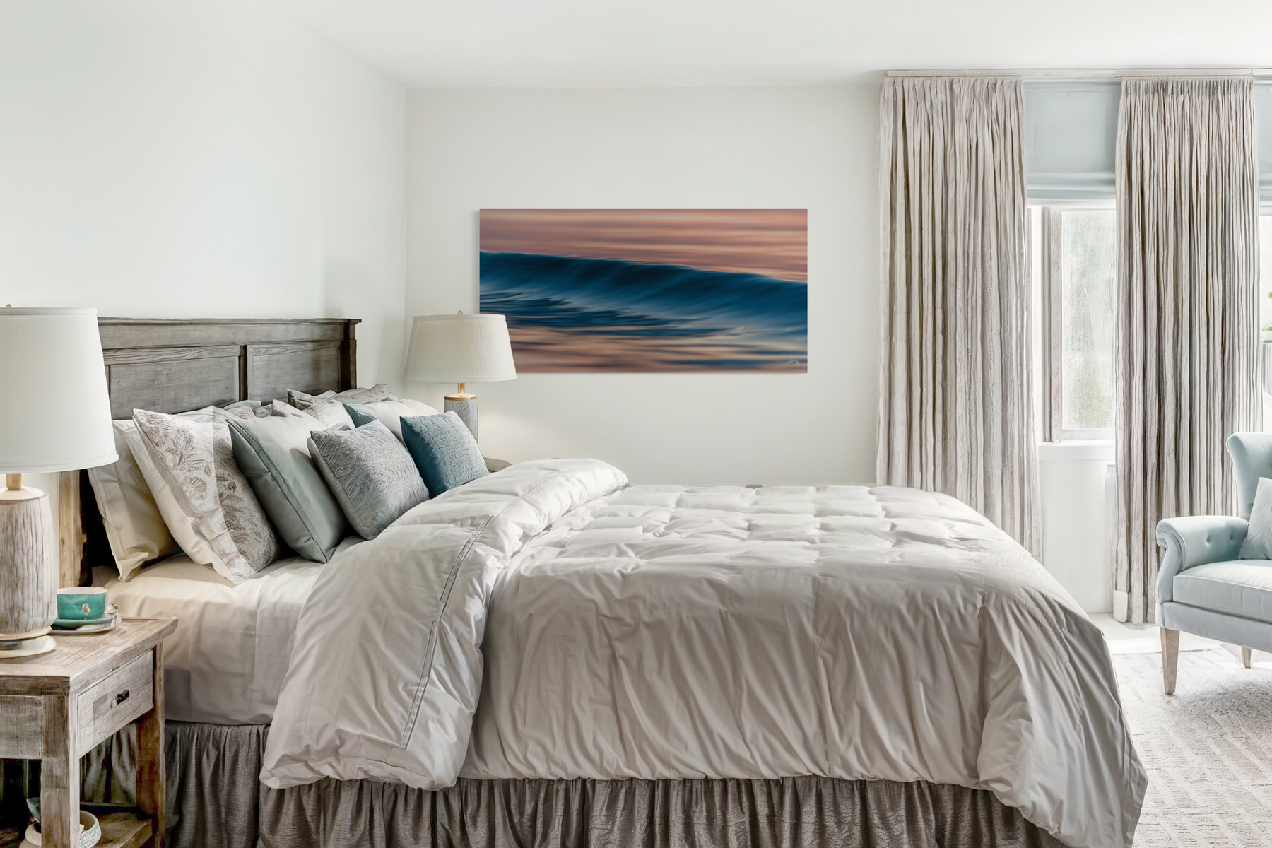 To aid in the process, we utilize digital mockups of YOUR space to help visualize variations under consideration. Email contact@offshoreorigins.com to start a conversation about your custom print!